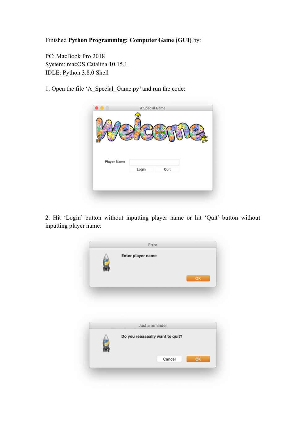 A Special Game - by Python3 发表于 2020-02-01 | 更新于 2020-09-09 | 分类于 学习记录 | 阅读次数: 本文字数: 117 | 阅读时长 ≈ 1 分钟 本文是readme.txt文档,介绍了我用Python开发的GUI(tkinter)人机交互小游戏的界面和操作步骤,下载地址:https://github.com/lumos0314/A-Special-Game.git