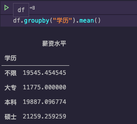 在Pandas中对数据进行分组计算可以使用groupby轻松搞定,比如使用df.groupby(“学历”).mean()一行代码即可对示例数据的学历进行分组并求不同学历的平均薪资,结果与Excel一致
