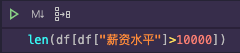 在Pandas中可以直接使用类似数据筛选的方法来统计薪资大于10000的岗位数量len(df[df[“薪资水平”]>10000])