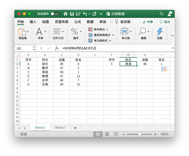 VLOOKUP算是EXCEL中最核心的功能之一了,我们用一个简单的数据来进行示例